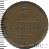 988 5 пенни. Финляндия 1911 Cu XF IFAM 25 115 Закрыто