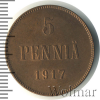 1003 5 пенни. Финляндия 1917 Cu XF SKLiF 19 190 Закрыто