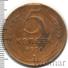 3592 5 копеек 1924 Cu VF- SahPapay 19 68 Закрыто