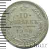 258 10 копеек 1908 СПБ ЭБ Ag VF+ kremon 41 208 Закрыто