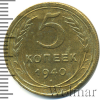 3470 5 копеек 1940 Br VF- Prizma 692 19 94 Закрыто