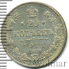 70 20 копеек 1913 СПБ ВС Ag AU СерНик 35 392 25.03.2026 10:04:36