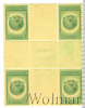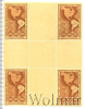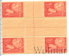 Квартблок почтовых марок 1 сентаво. Пенсионный фонд для работников почты. Куба