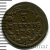 2063 3 пфеннинга. Германия. Саксония-Альбертина 1761 Cu XF aquilas 15 3 588 26.03.2026 12:17:28