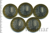 Подборка юбилейных 10 рублей. Регионы России, 5 шт