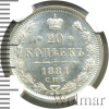 616 20 копеек. Топ грейд 1881 СПБ НФ Ag MS 66 kemer 1 1 30.03.2026 10:41:00
