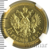 6 15 рублей. СС. NGS русский R 1897 АГ Au MS 64 Maxische 23 164 000 09.04.2026 10:00:20