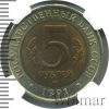 3559 5 рублей. Винторогий козел 1991 Bm MS 65 0 1 16.04.2026 13:57:12