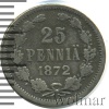 153 25 пенни. Финляндия 1872 S Ag VF WOLK 20 185 Закрыто
