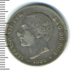 875 5 песет. Испания 1876 Ag XF sinnas 27 822 Закрыто