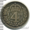 782 4 пенса. Великобритания 1902 Ag UNC Lutik 25 3 221 Закрыто