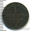 1166 1 пфеннинг. Пруссия. Германия 1864 А Cu VF+ igor777 52 63 Закрыто