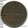 1167 1 пфеннинг. Германия. Гессен 1868 Ag VF+ ilyich 86 276 Закрыто
