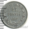 263 25 пенни. Финляндия 1907 L Ag VF+ Воланд 10 106 Закрыто
