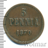 894 5 пенни. Финляндия 1870 Cu XF- Pushkin 23 1 378 Закрыто