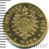 1423 5 марок. Бавария. Германия 1877 D Au 2,01 UNC LESNOI 62 11 389 Закрыто