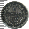 906 5 копеек R. 1857 СПБ ФБ Ag XF+/AU Миша_13 25 21 049 Закрыто