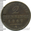 1422 2 пфеннинга. Германия 1858 B Cu VF mkm1968 81 301 Закрыто