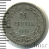 296 25 пенни. Финляндия 1908 L Ag VF/XF Орехово 14 205 Закрыто