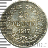 484 25 пенни. Финляндия 1917 S Ag AU carniks 22 227 Закрыто
